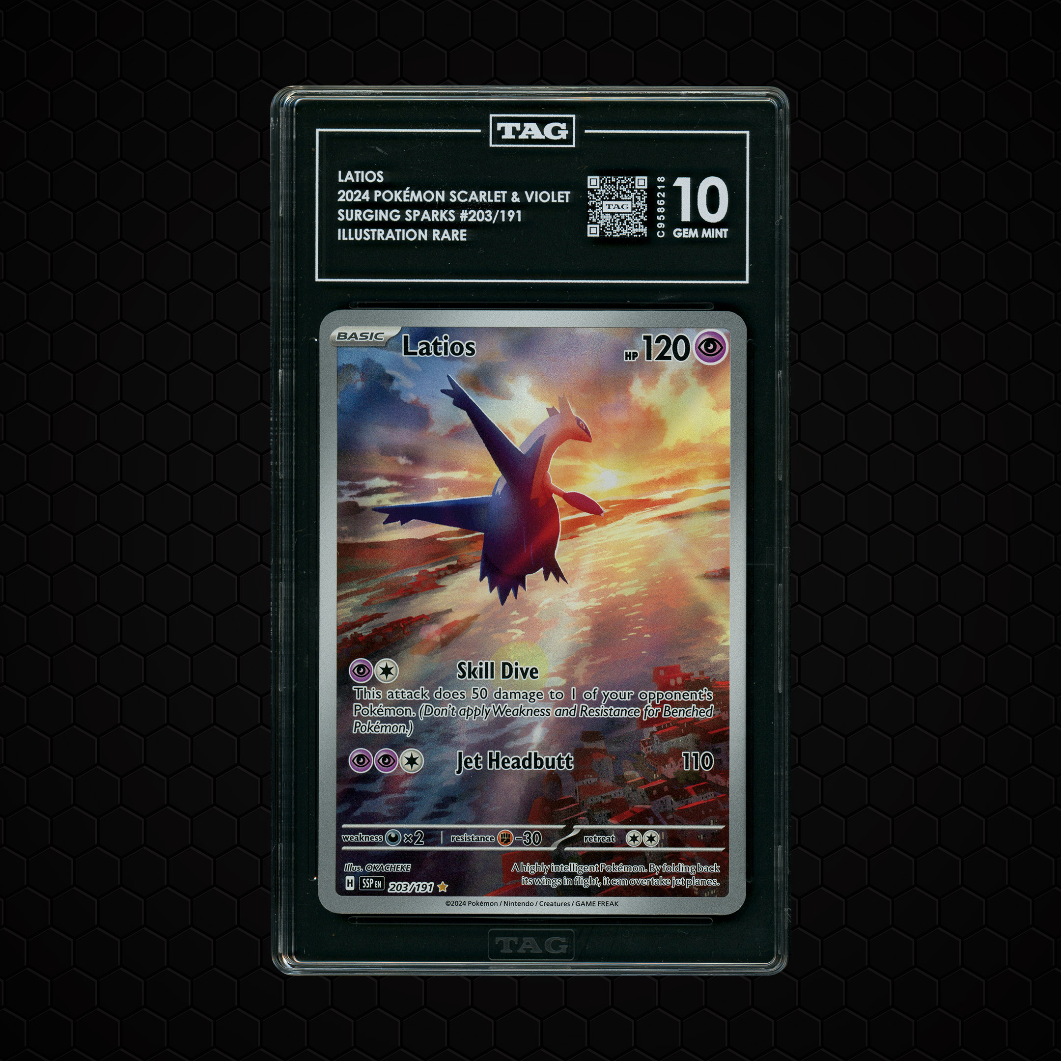 Buy 2024 Surging Sparks Latios #203 TAG 10 - 1643. Find Pokémon cards online for sale on Beezie.